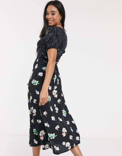 Oasis Floral Patchwork Midi Dress In Black Asos